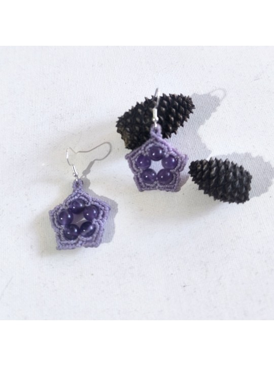 Pendientes artesanales en forma de estrella, tejidos a mano en macramé con hilo de la mejor calidad y resistentes al agua. En el centr decorados con cuentas naturales que aportan brillo y un contraste elegante. Una pieza ligera, original y llena de encanto bohemioEl diseño combina el estilo artesanal con un toque moderno, ideal para quienes buscan accesorios únicos y hechos a mano. Son ligeros, cómodos de llevar y perfectos para darle un aire especial tanto a un look diario como a una ocasión más especial.
