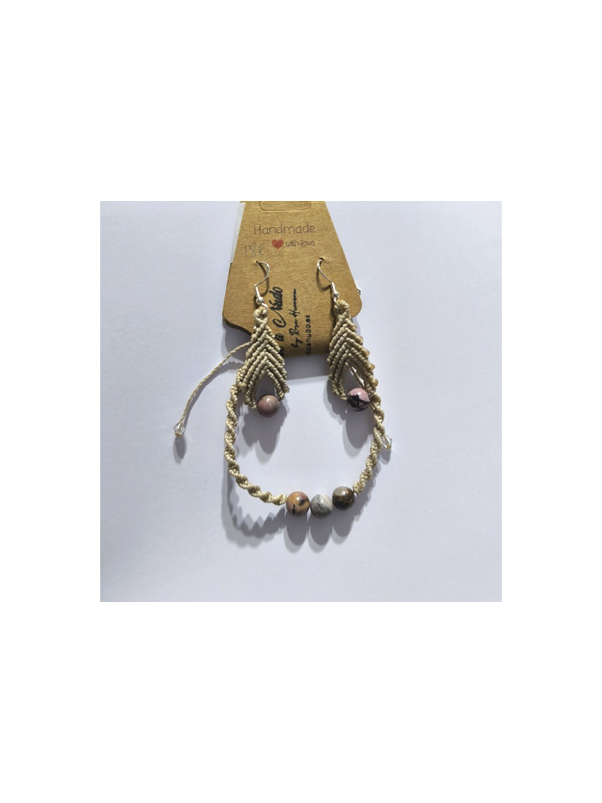 Este hermoso conjunto artesanal combina delicadeza y sencillez al mismo tiempo. Los pendientes gota presentan un diseño triangular que realza el rostro, mientras que la pulsera complementa el look con un patrón tejido que evoca un estilo bohemio y sofisticado. Cada pieza está hecha a mano, cuidando cada detalle para garantizar exclusividad y calidad.